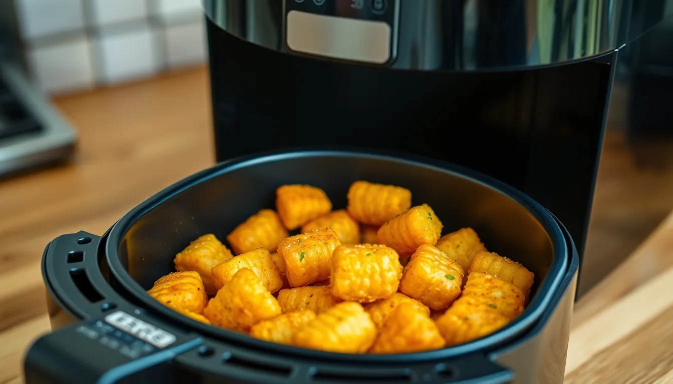 Air frying creates a perfectly crunchy exterior while maintaining a soft, fluffy interior. The hot air circulation minimizes oil usage, producing a desirable crispness without excess greasiness. With a typical cooking time of 15 to 20 minutes at 400°F (204°C), users find that shaking the basket ensures consistent texture throughout the batch. Air-fried Tater Tots achieve a golden-brown color, indicating the perfect balance of crunch and tenderness, making each bite enjoyable.